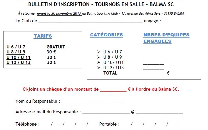 Le Balma Sporting Club organise des Tournois en Salle pour les catégories :