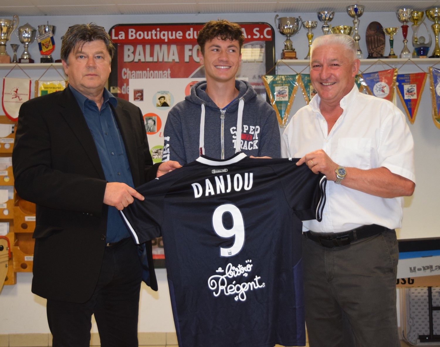 Il y avait du beau monde ce samedi pour la remise du maillot de son futur club, les Girondins de Bordeaux, avec entre autres : Yannick Stopyra, Alain Giresse, Vincent Terrail-Novès, maire de Balma, le président Roger Cau, David Boué, directeur sportif, Eric Herriou l’entraîneur des U17 nationaux, celui des joueurs de national 3 Fabrice Dubois…