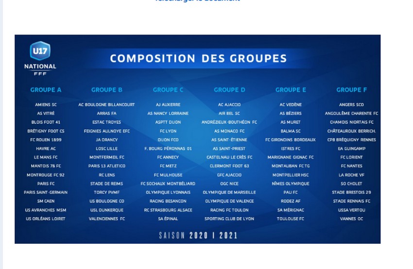 Tous les groupes de U17 nationaux pour cette saison :