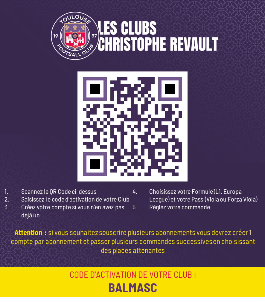 Notre club a la possibilité de commander 60 abonnements à tarif préférentiel jusqu’au 30 juin avec le code BALMASC . Pour cela, un impératif : être licencié au club.