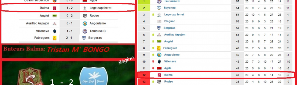 CFA2 – Balma/Lège Cap Ferret – Défaite 1- 2