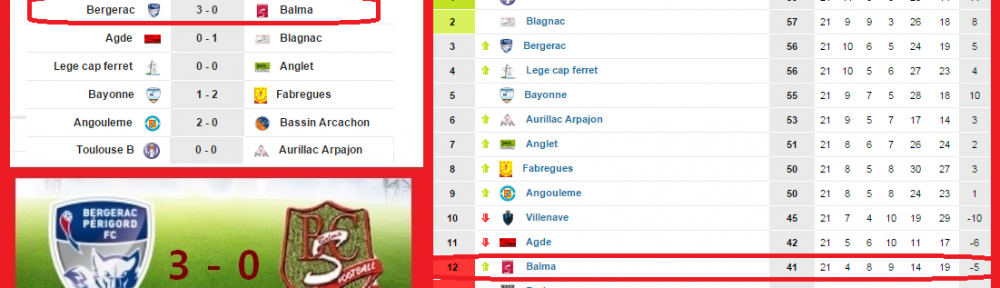 CFA2 – Bergerac/Balma – Défaite 0 – 3