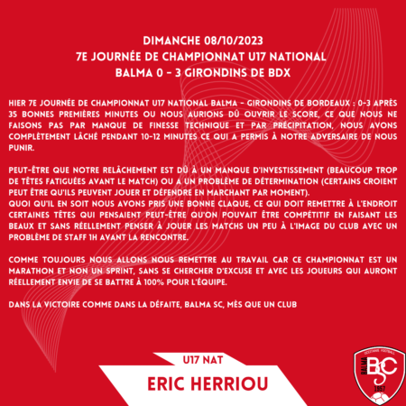 Le retour d’Eric Herriou sur la défaite face aux Girondins ce week-end ! 💬