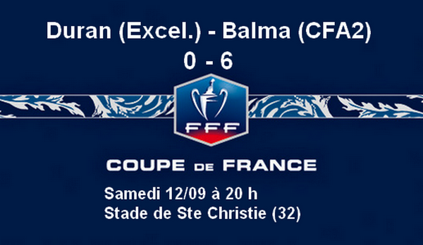 Balma était opposé à Duran qui évolue en Excellence. Le match avait lieu sur le stade de Sainte Christie, le stade de Duran n’étant pas aux normes réglementaires.
