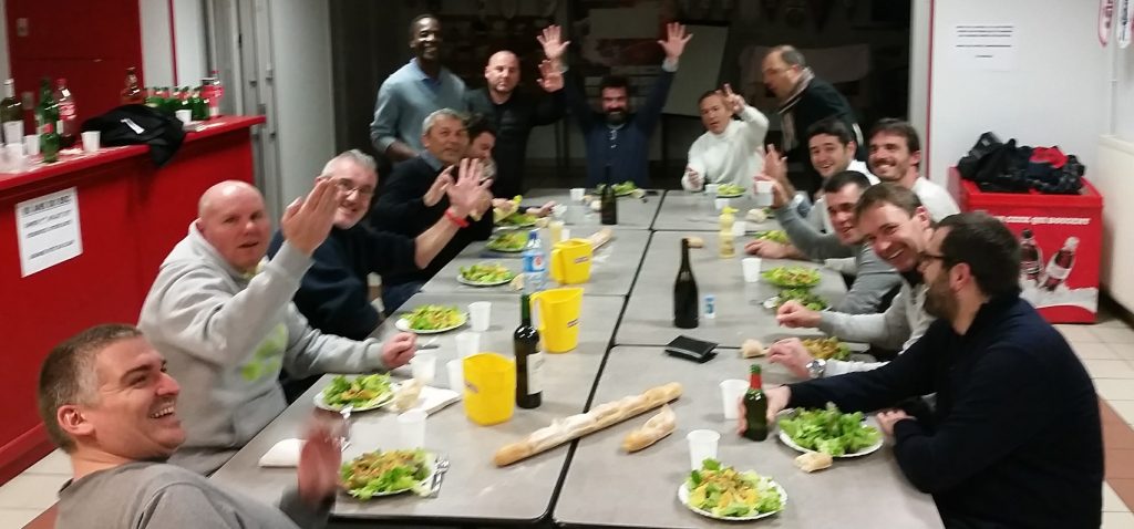 Damien : « Enième match sans défaite ce vendredi soir pour nos valeureux vétérans face à Gratentour. Menés 3 à 2 à 30 minutes de la fin du match, ils parviennent finalement à s’imposer 5 à 3. Une victoire fêtée dignement comme d’habitude au Siège grâce à notre chef d’un soir ! Merci Paulo et à lundi ! »