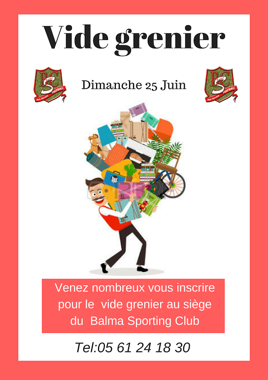 Le Vide Grenier du Balma SC aura lieu le dimanche 25 juin 2017 au Compas de Balma (à côté d’Intermarché). Les inscriptions sont ouvertes. Vous pouvez d’ores et déjà venir vous inscrire au club house (stade municipal de Balma).