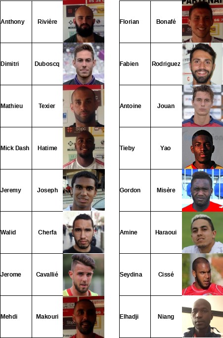 Le groupe retenu par Fabrice Dubois : Rivière – Duboscq – Texier – Hatime – Joseph – Cherfa – Cavallié – Makouri – Bonafé – Rodriguez – Jouan – Yao Tieby – Misère – Haraoui – Cissé – Niang