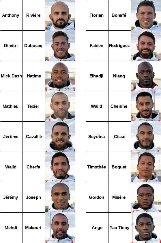 Le groupe retenu par Fabrice Dubois : Rivière – Duboscq – Hatime – Texier – Cavallié – Cherfa – Joseph – Makouri – Bonafé – Rodriguez – Niang – Chenine – Cissé – Boguet – Misère – Yao Tieby.