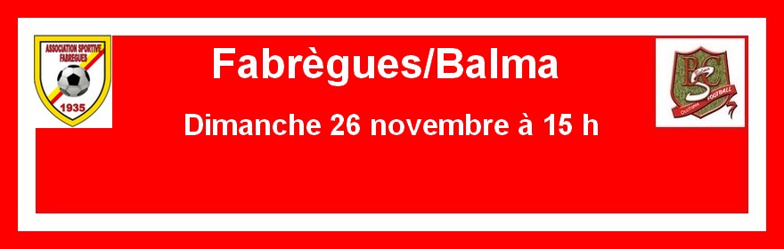 L’équipe de Fabrègues est toujours présente en Coupe de France : elle rencontrera Rodez samedi 2/12 pour le huitième tour. Les Fabréguois gagnent ou perdent : pas de match nul à leur compteur pour l’instant. Les Balmanais cumulent les matchs nuls qui ne les font pas vraiment avancer au classement. Les deux derniers matchs de championnat auraient pu (et même dû à Mende) tourner à leur faveur. A chaque rencontre, ils se battent à fond pour obtenir les trois points, un peu plus de réussite sur le dernier geste leur permettra sûrement d’y parvenir… dimanche ?