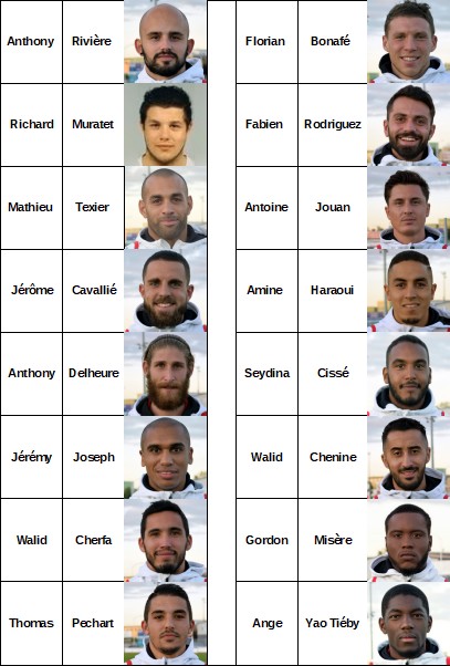 Le groupe retenu par Fabrice Dubois : Rivière – Muratet – Texier – Cavallié – Joseph – Cherfa – Delheure – Pechart – Bonafé – Rodriguez – Haraoui – Jouan – Misère – Cissé – Chenine – Yao Tieby