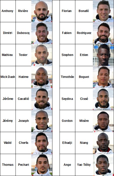 Le groupe sélectionné par le coach : Rivière – Duboscq – Texier – Hatime – Cavallié – Cherfa – Joseph – Pechart – Bonafé – Rodriguez – Boguet – Ettien – Misère – Yao – Niang – Cissé.
