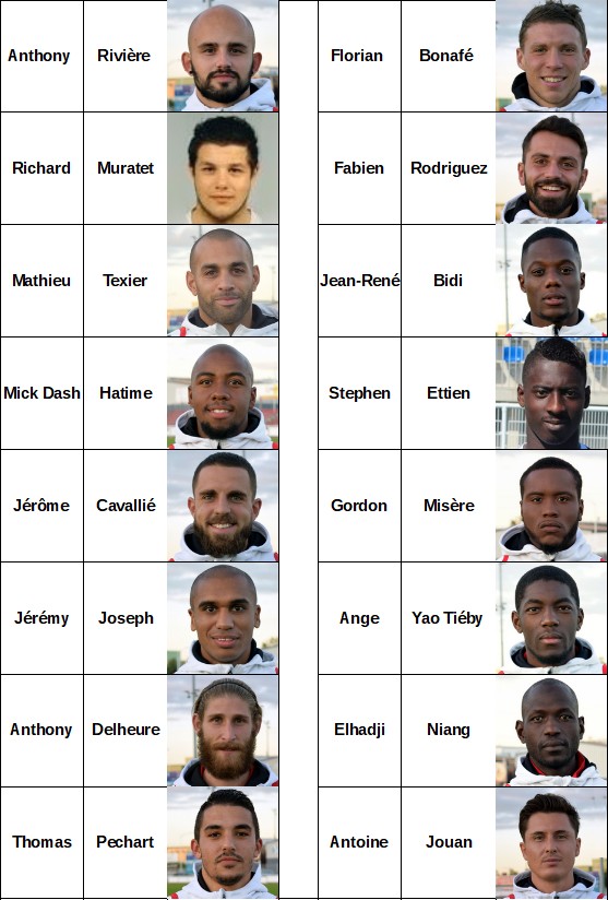 La liste et le trombinoscope des joueurs retenus : Rivière – Muratet – Texier – Hatime – Cavallié – Joseph – Delheure – Pechart – Bonafé – Rodriguez – Bidi – Ettien – Misère – Yao – Niang – Jouan