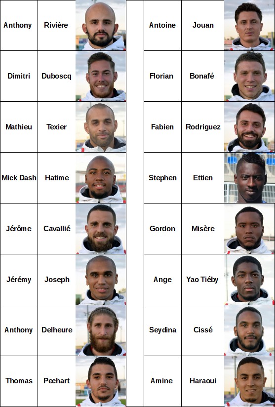 La liste et le trombinoscope des joueurs retenus : Rivière – Duboscq – Texier – Hatime -Cavallié – Joseph – Delheure – Pechart – Jouan – Bonafé – Rodriguez – Cissé – Haraoui – Misère – Ettien – Yao.