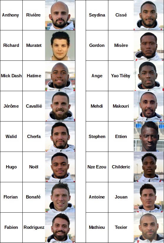 La liste des joueurs retenus : Rivière – Muratet – Hatime – Cavallié – Cherfa – Noël – Bonafé – Rodriguez – Cissé – Misère – Yao Tieby – Makouri – Ettien – Childeric – Jouan – Texier