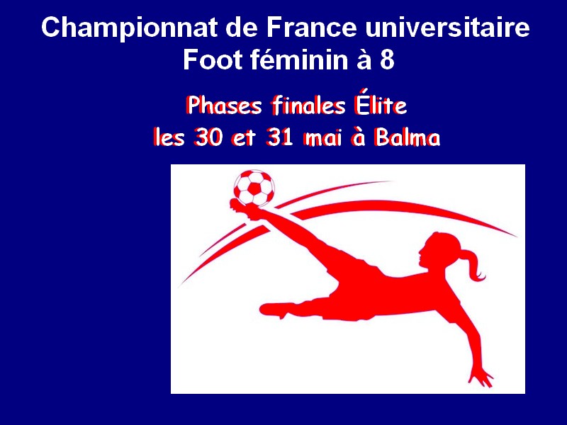 La ville et le club Balma ont l’honneur d’accueillir le championnat de France universitaire de foot féminin à 8. Mercredi 30 et jeudi 31 mai auront lieu sur nos installations, les phases finales Elite.