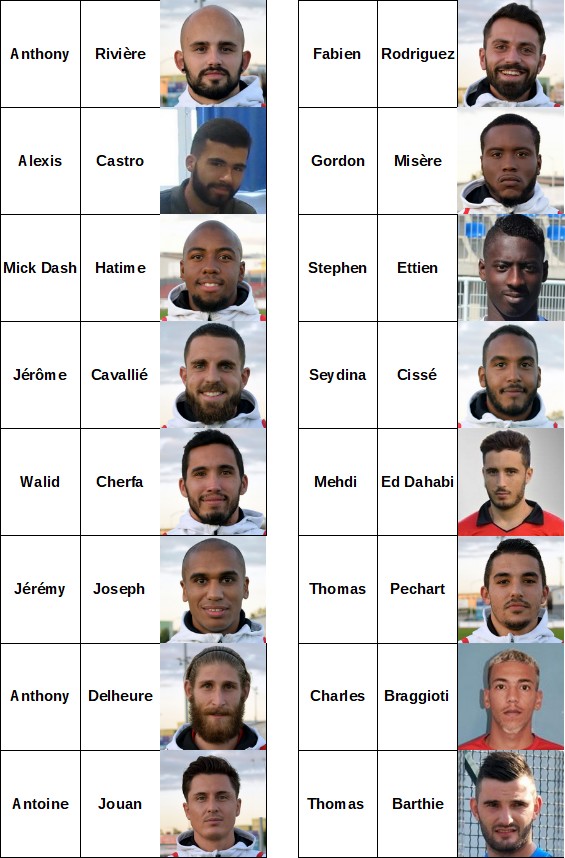 La liste et le trombinoscope des joueurs retenus par Fabrice Dubois : Rivière – Castro – Hatime – Barthié – Cavallié – Delheure – Cherfa – Joseph – Péchart – Jouan – Rodriguez – Ed Dahabi – Misère – Ettien – Cissé – Braggiotti.