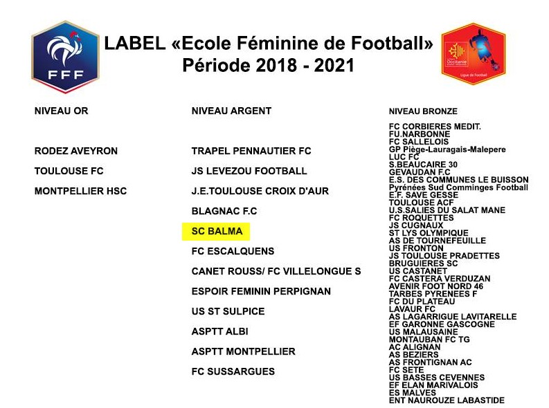 L’école de football féminine du Balma SC s’est vue décerner le Label argent.