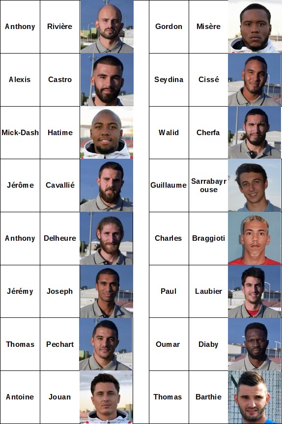 La liste et le trombinoscope des joueurs retenus par le coach : Rivière – Castro – Hatime – Cavallié – Delheure – Joseph – Pechart – Jouan – Misère – Cissé – Cherfa – Sarrabayrouse – Braggiotti – Laubier – Diaby – Barthié