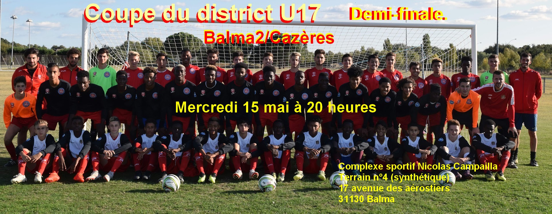 14 mai 201914 mai 2019Monique Demi-finale de la coupe du district U17 : Balma2/Cazères Par Monique Tout un club derrière ses équipes ! Allez Balma ! L’autre demi-finale opposera les Pradettes à Plaisance.