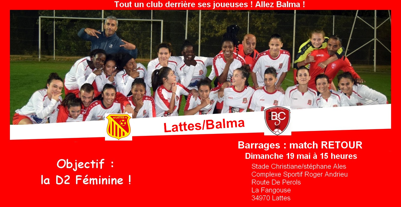 C’est sûr, nos filles partent avec un sérieux handicap de 4 buts encaissés lors du match aller à Balma. On s’attend donc à voir des guerrières sur le terrain dimanche à Lattes.