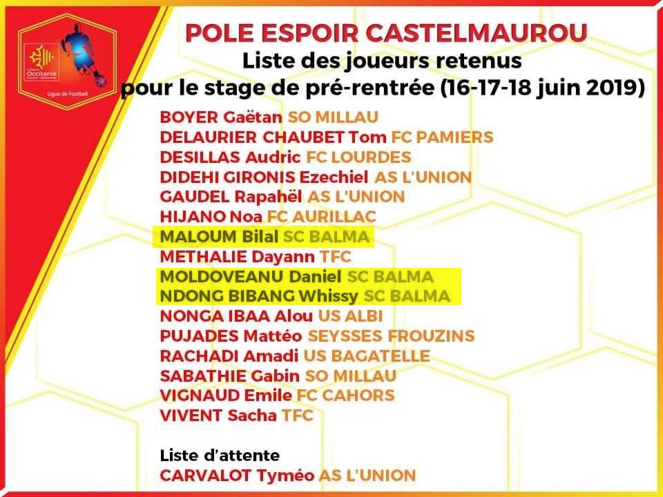 Un grand bravo à trois de nos U13 : Bilal Maloum, Daniel Moldoveanu et Whissy Ndong Bibang qui ont brillamment réussi le concours d’entrée au pôle espoir de Castelmaurou.