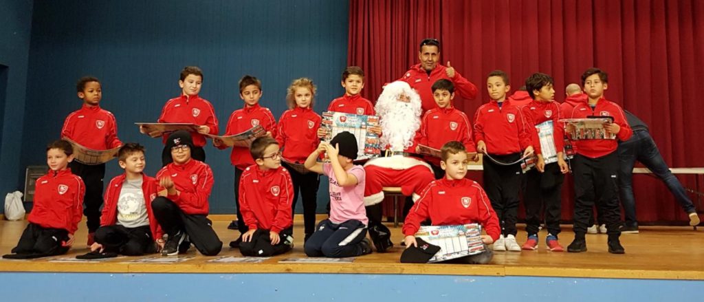 Les enfants de l’école de foot et du foot initiation ont sûrement été très sages cette année. De passage dans la région, le Père Noël est venu assister au goûter organisé par le club mercredi. Il avait sa hotte bien chargée, chaque enfant a reçu un bonnet. Ce cadeau de saison leur sera bien utile pour affronter l’hiver à l’entraînement, dans la cour de l’école et dans tous leurs loisirs à l’extérieur.