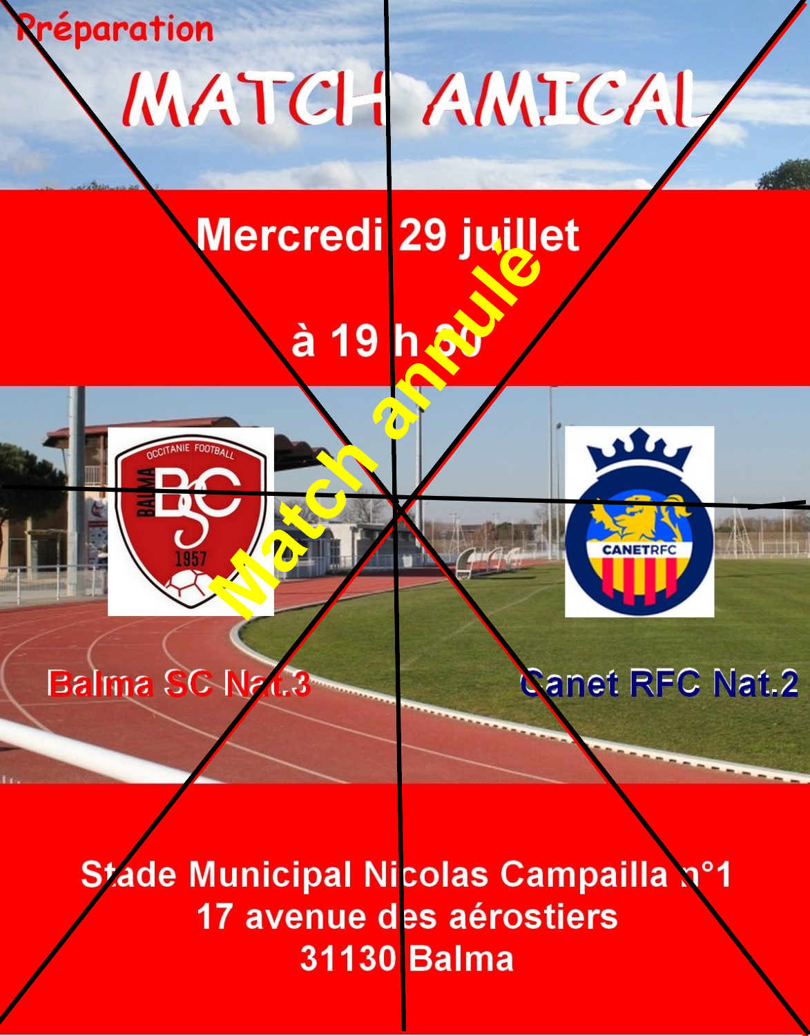 Attention, match annulé, suite à l’interdiction des accès aux vestiaires.