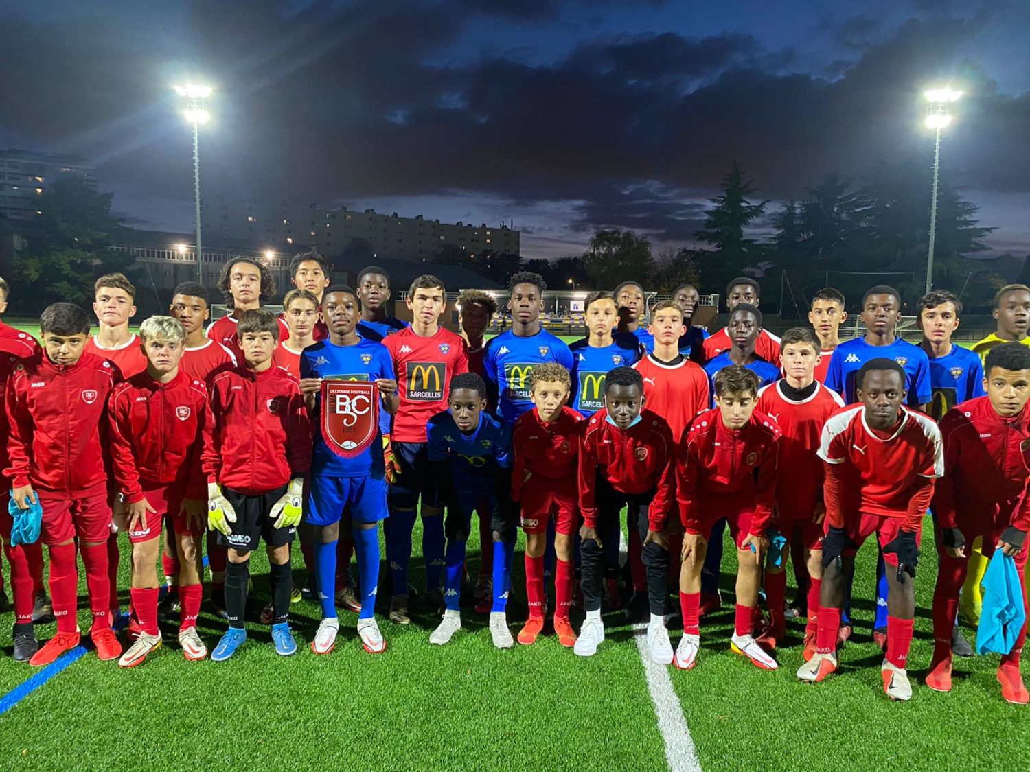 Une première mi-temps très intéressante, où nous avons pu proposer un contenu cohérent face à un adversaire qui pose le jeu et collectivement bien organisé (0-0 MT). Une seconde avec plus de déchets et de fatigue de notre côté. Défaite 3-0. Malgré le contexte (trajet de 9h et un échauffement assez rapide), nous avons pu proposer un contenu intéressant face à une très belle équipe. Nous finissions par un repas partagé et une visite de Wesley Ngo Baheng, ancien joueur professionnel venu donner de précieux conseils à nos jeunes.