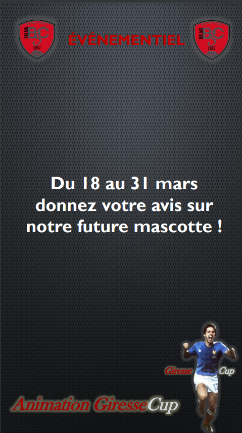 Vous avez jusqu’à la fin du mois pour nous en faire part. En effet, nous vous présenterons la mascotte choisie lors de la Giresse Cup qui se tiendra au mois de juin comme nous vous l’avons annoncé précédemment.
