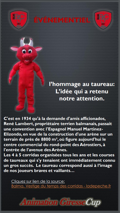Le choix de cette mascotte doit se faire en tenant compte du fait que nous sommes à Balma, qu’elle doit caractériser au mieux nos joueurs motivés et engagés.