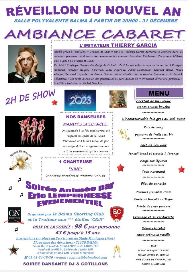 Ambiance «Cabaret», cette année, au réveillon de la Saint Sylvestre organisé par le Balma SC et le traiteur gastronomique C&N.