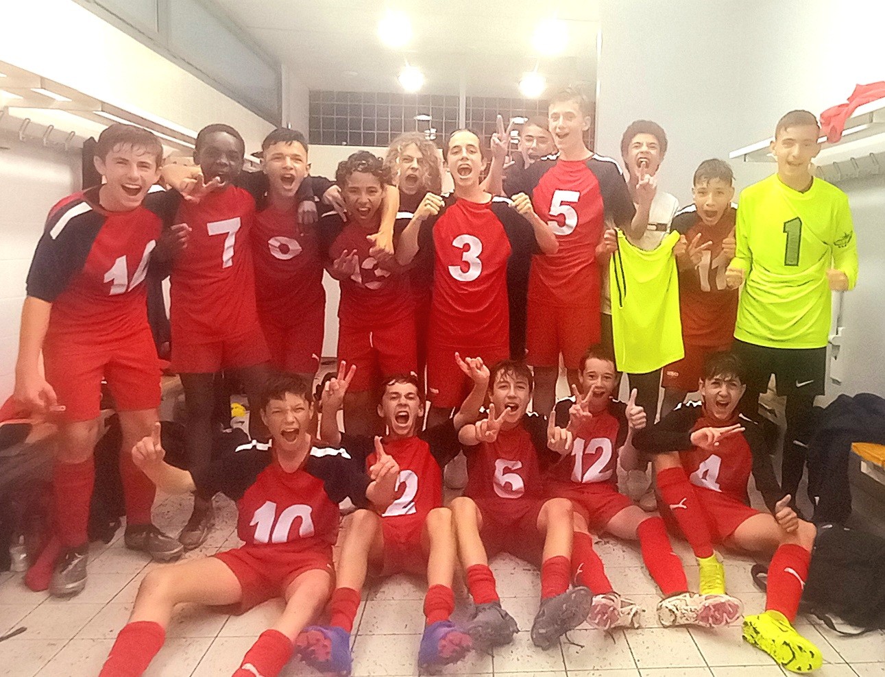 Anne Marie Binzangi : Cet après-midi, nous avions à cœur de montrer notre intention de ne rien lâcher jusqu’au bout de la saison. C’est encore avec de nombreuses absences que les 14 joueurs présents sur ce match ont réussi à mettre en avant une attitude positive et solidaire qui nous a permis de sortir de ce match difficile face à une équipe qui était dans l’obligation de gagner à domicile : 0-0 à la mi-temps. Nous démarrons fortement la seconde mi-temps et nous sommes récompensés grâce à l’abnégation d’Amine qui gagne son duel face au gardien sorti loin de sa surface. L’équipe adverse arrive tout de même à égaliser sur une reprise de volée imparable à 20min de la fin. Mais, le groupe a gagné en expérience et s’est montré serein jusqu’à l’obtention du penalty que Marius a su botter avec précision. Aujourd’hui, nous sommes mathématiquement sûrs que la génération 2009 sera en U15R1 la saison prochaine ! Bravo aux garçons et mention spéciale aux U13 (Sami et Yann) qui ont contribué à cette victoire importante.