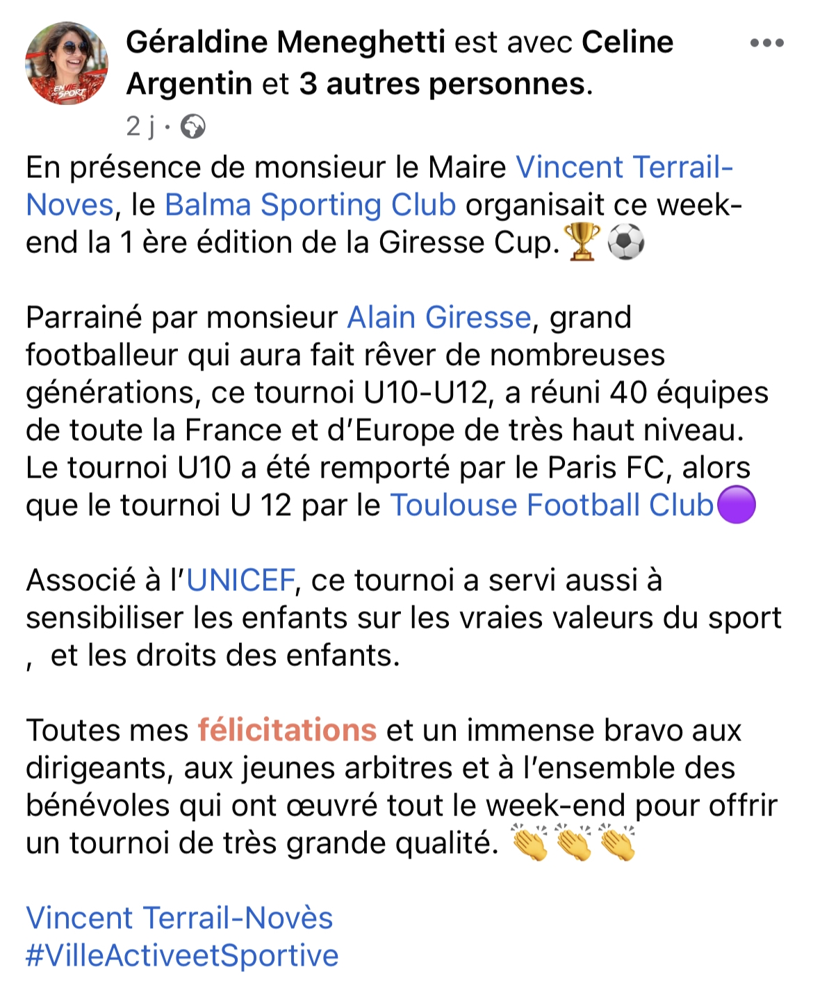 20 juin 202320 juin 2023Farah Petit mot de notre adjointe aux sports Géraldine Meneghetti et de notre Maire Vincent Terrail-Noves : Par Farah