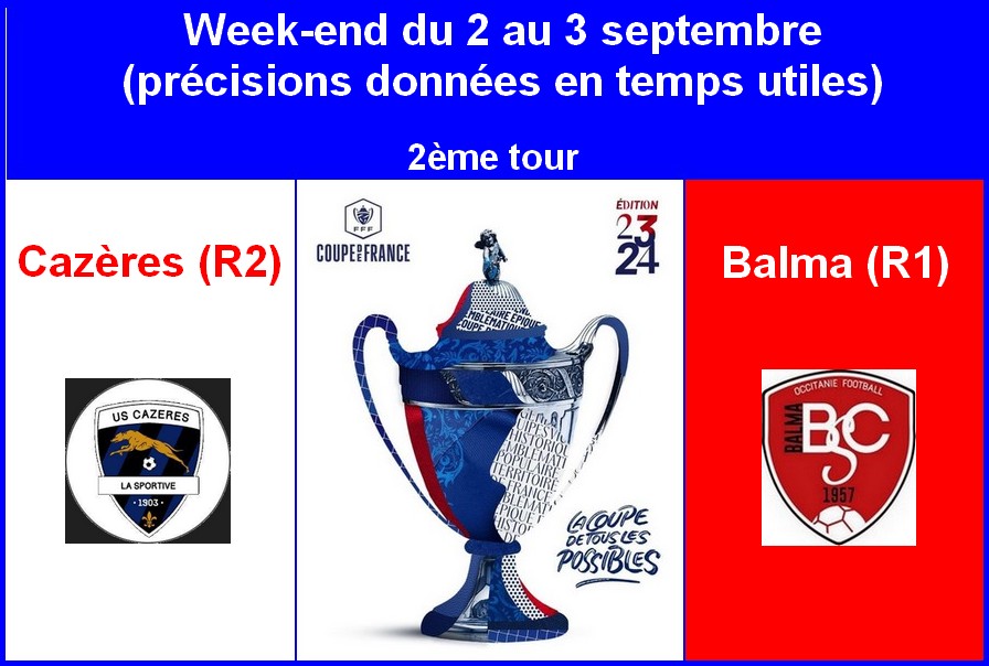 Les Balmanais rentreront au second tour, ils affronteront pour l’occasion l’équipe de Cazères (R2).