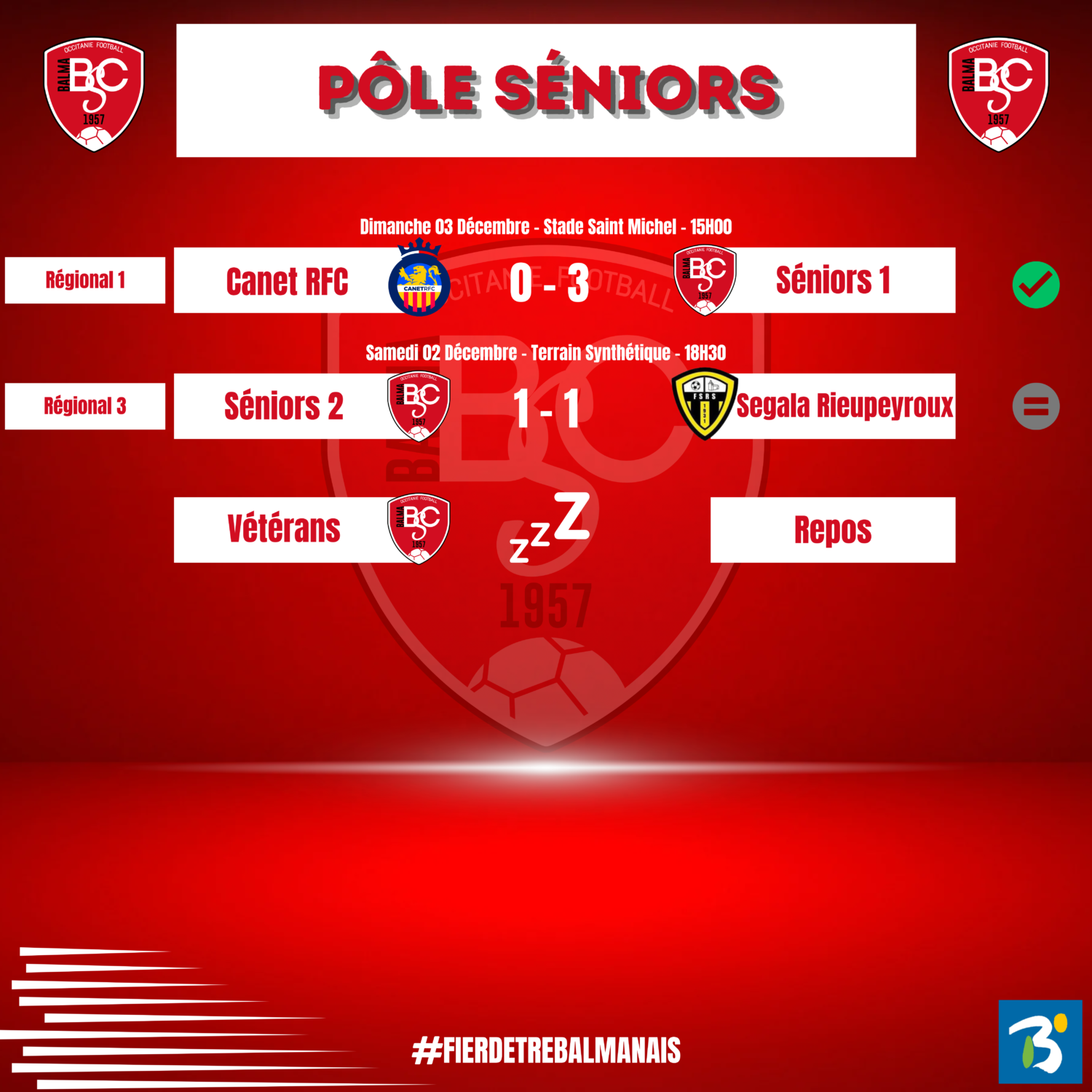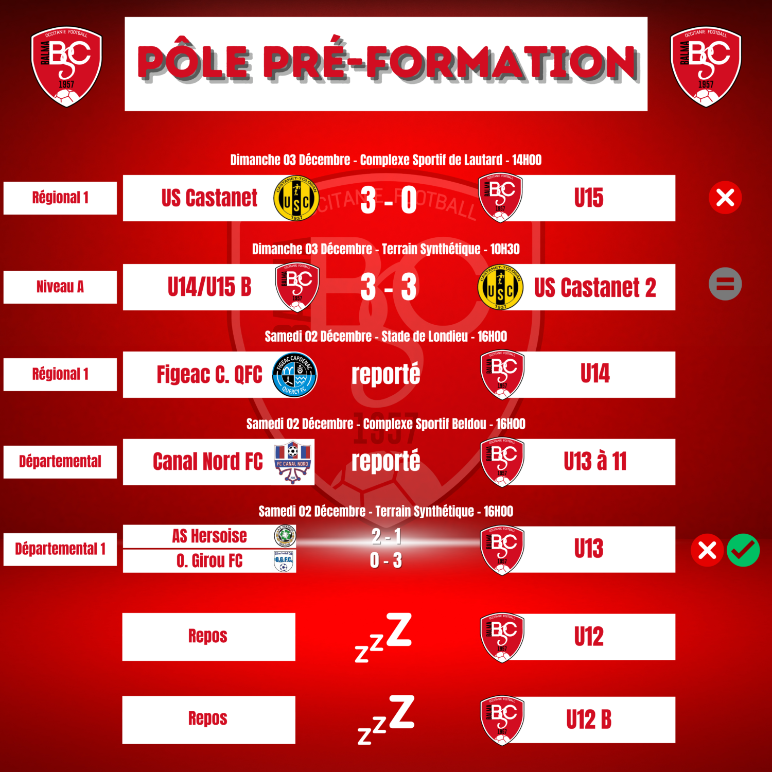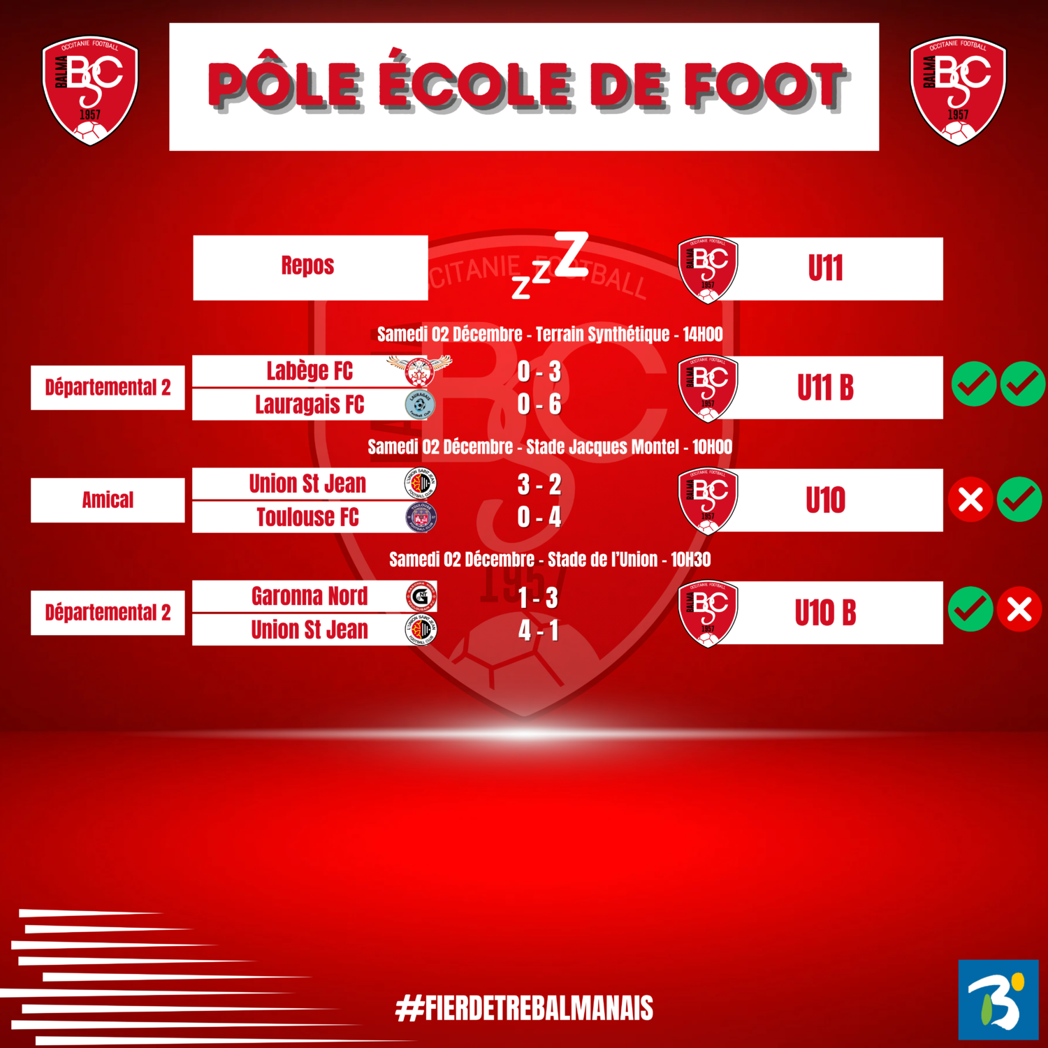 Les résultats du week-end sont là ! 📢