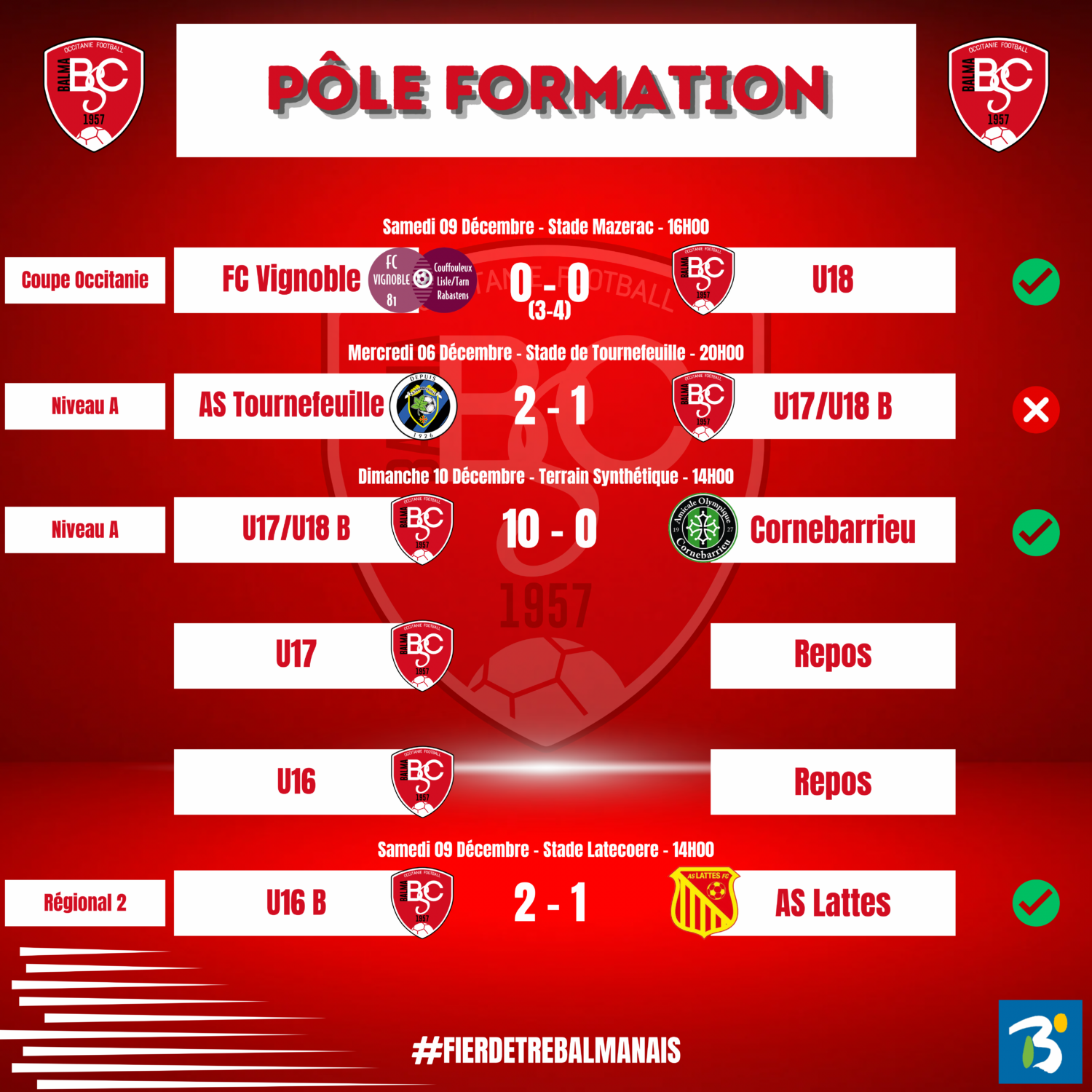 Les séniors R1 confirment sa bonne série de victoires ! ✅ La R3 perd face au leader de la poule sur une courte marge ! ❌ Les U18 s’en sortent en coupe et continuent leurs chemin ! 🏆 Les U13 à 11 et les U16 B gagnent à domicile ! 😎 2/2 pour les U10 A ! 🌟