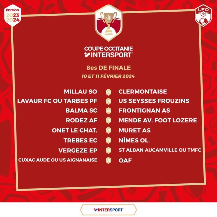 Le tirage au sort pour ce 8emes de finale de Coupe Occitanie ! 🏆