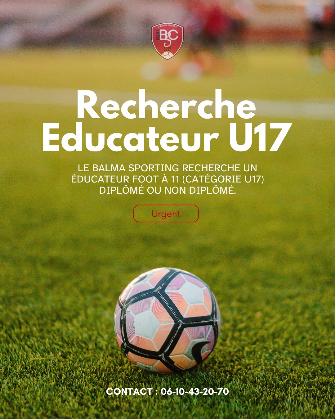 29 septembre 202529 septembre 2025Farah Recherche Educateur U17 Par Farah Le Balma Sporting recherche un éducateur foot à 11 (catégorie U17) diplômé ou non diplômé. Contact : 06-10-43-20-70