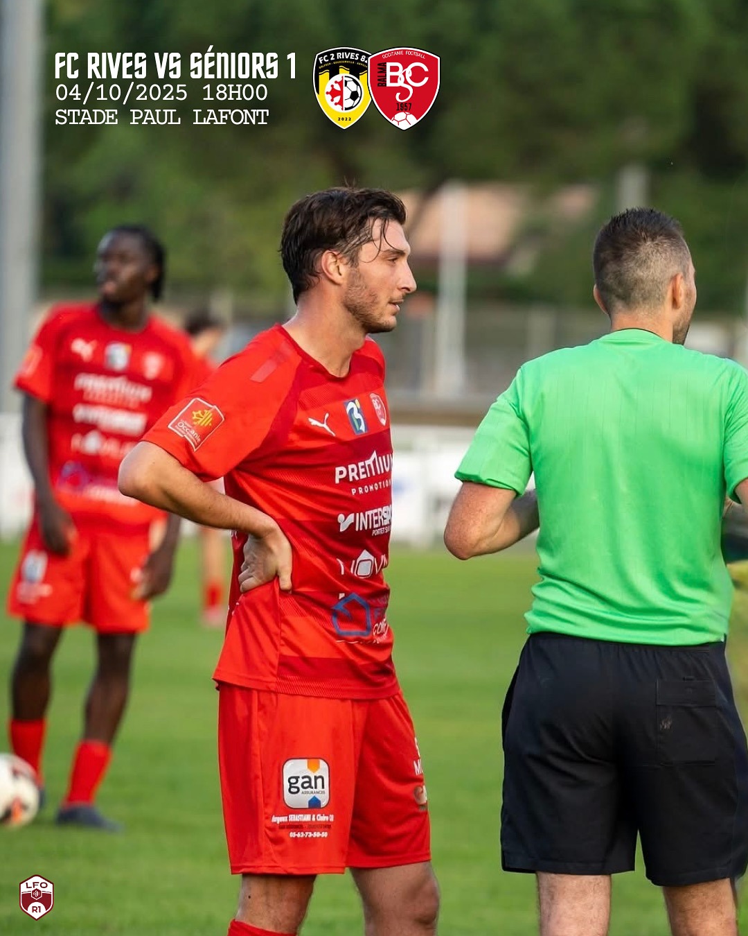 Nos joueurs se déplacent ce samedi 04 octobre à 18h00 pour affronter le FC Rives 82 au Stade Paul Lafont.