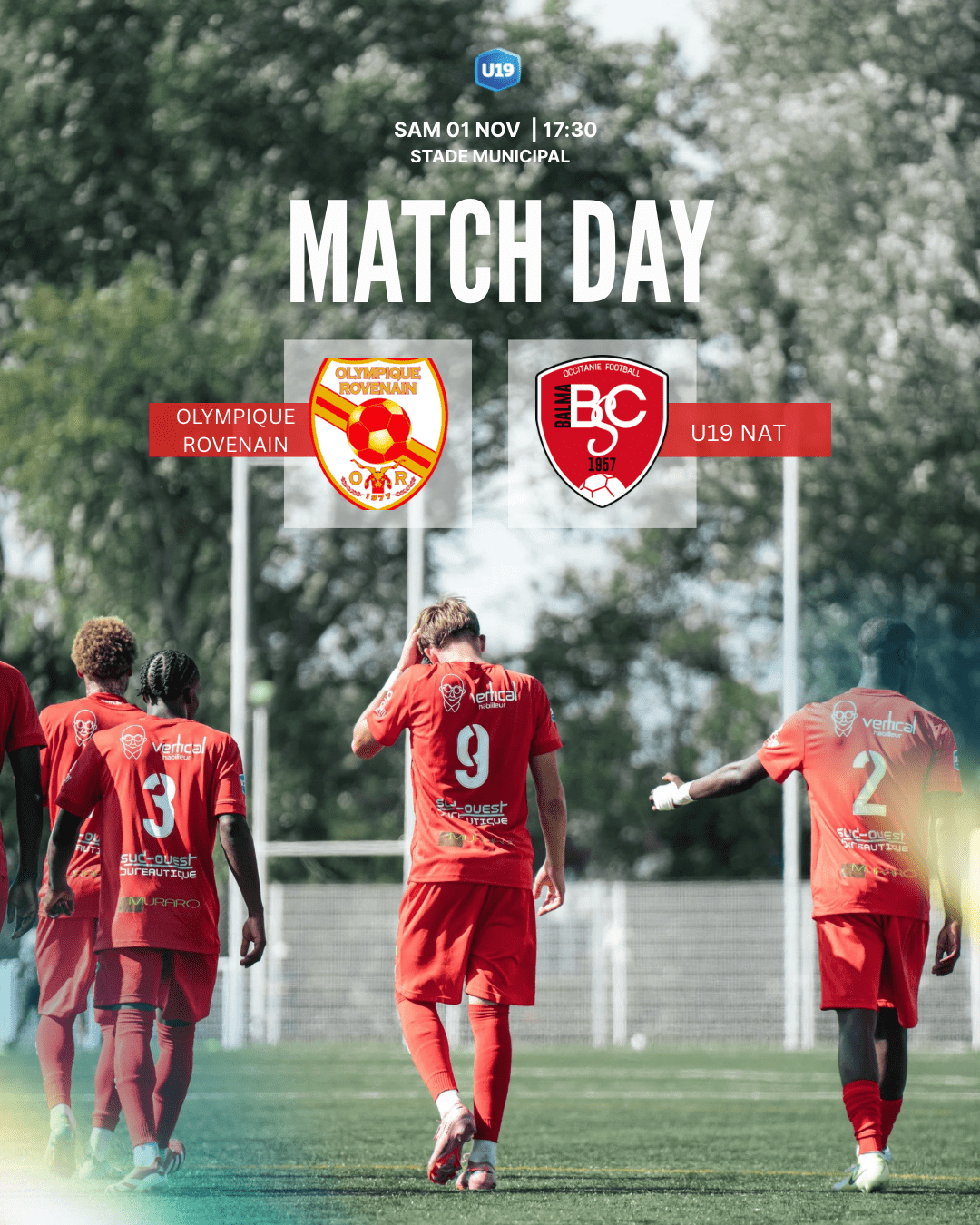 Nos jeunes se déplacent sur la pelouse de l’Olympique Rovenain ce samedi 1er novembre à 17h30.