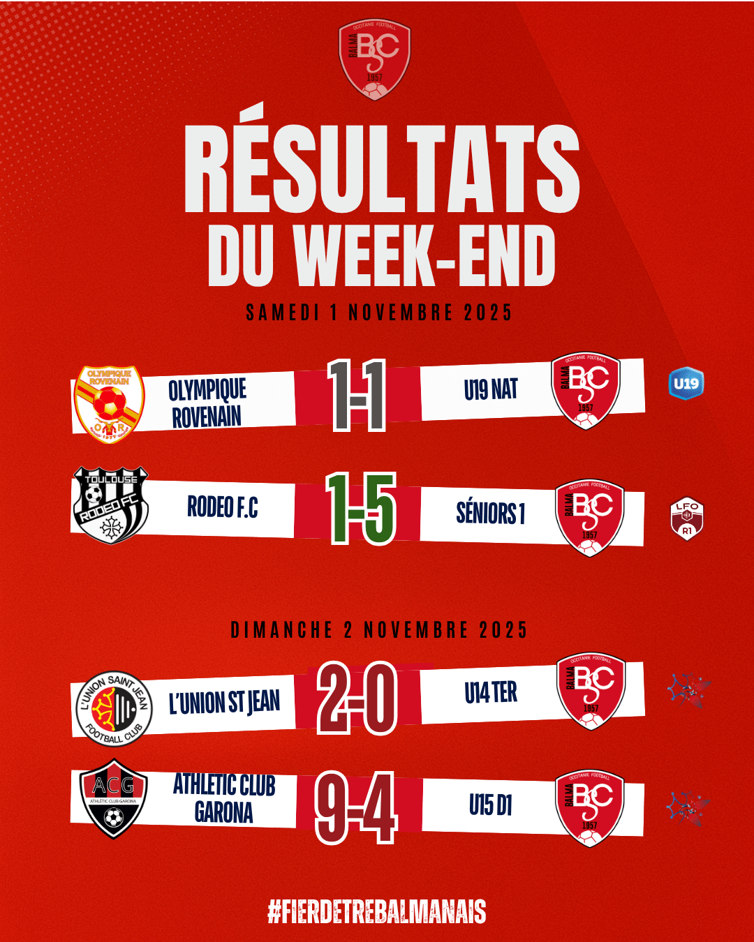 Nos U19 Nationaux repartent avec un nul solide (1-1) tandis que nos U14 et U15 se sont inclinés malgré leur combativité.