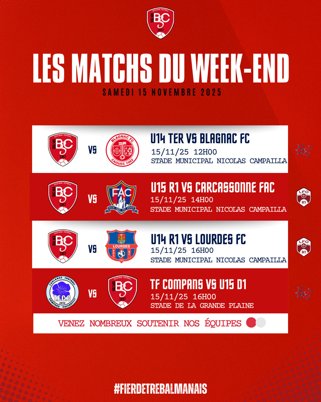 Venez nombreux encourager la jeunesse balmanaise et nos équipes fanions au Stade Municipal Nicolas !