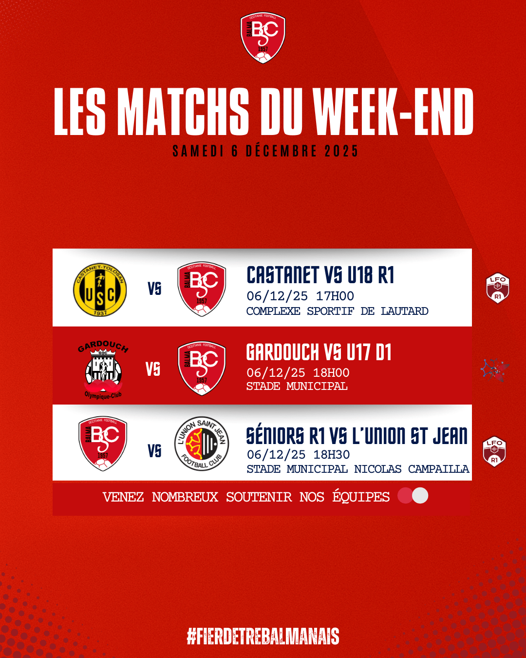 Nous vous attendons nombreux pour encourager nos équipes et partager ce week-end mémorable autour de notre club et de ses valeurs.