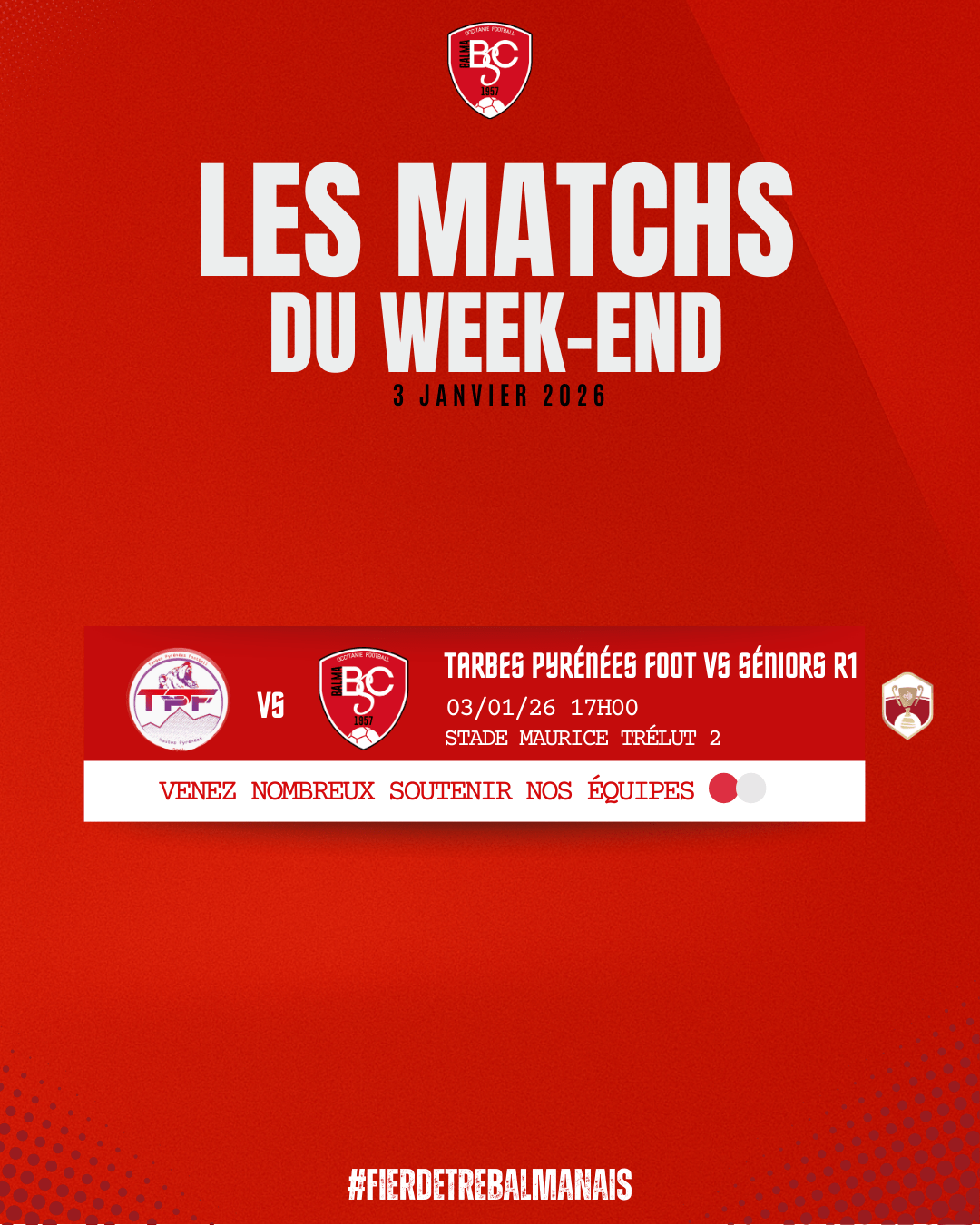 On compte sur vous pour venir nombreux encourager nos joueurs et porter haut les couleurs du club ❤️🤍