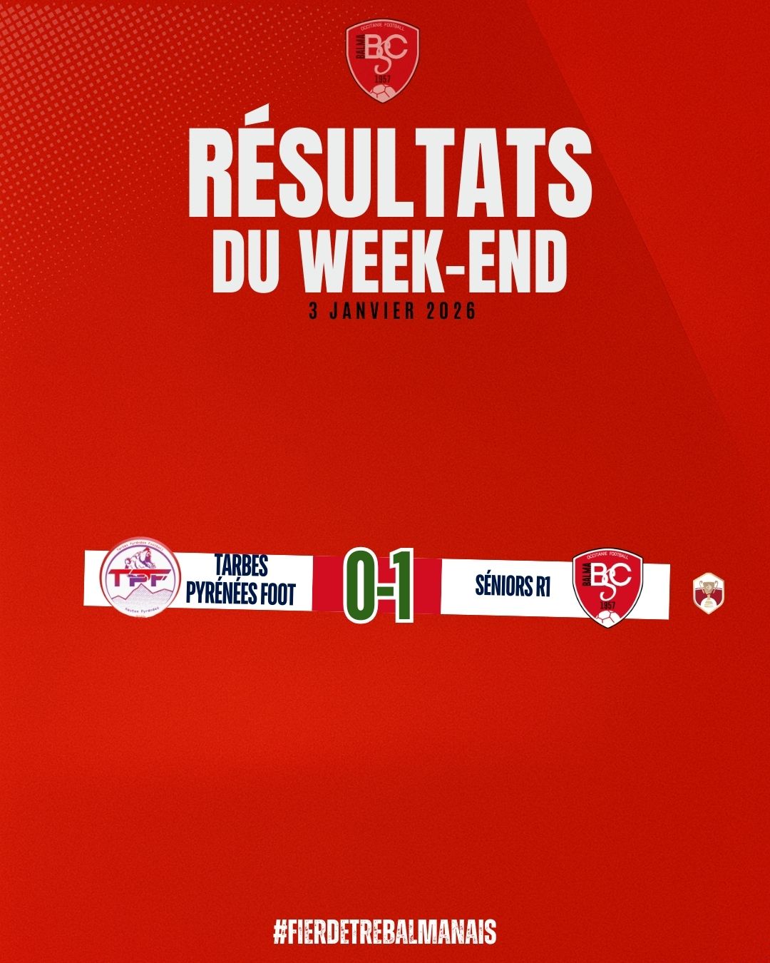 Nos Seniors R1 s’imposent 0️⃣-1️⃣ sur la pelouse de Tarbes Pyrénées Foot 🔥