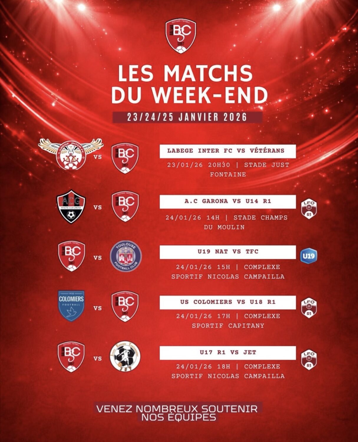Venez nombreux encourager nos joueurs, faire du bruit en tribunes et porter haut les couleurs du club 🔴⚪