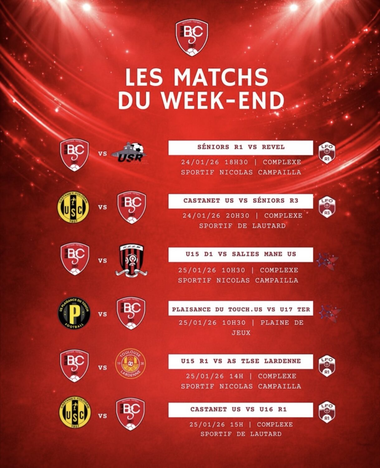 Voici les rencontres de nos équipes pour ce week-end !