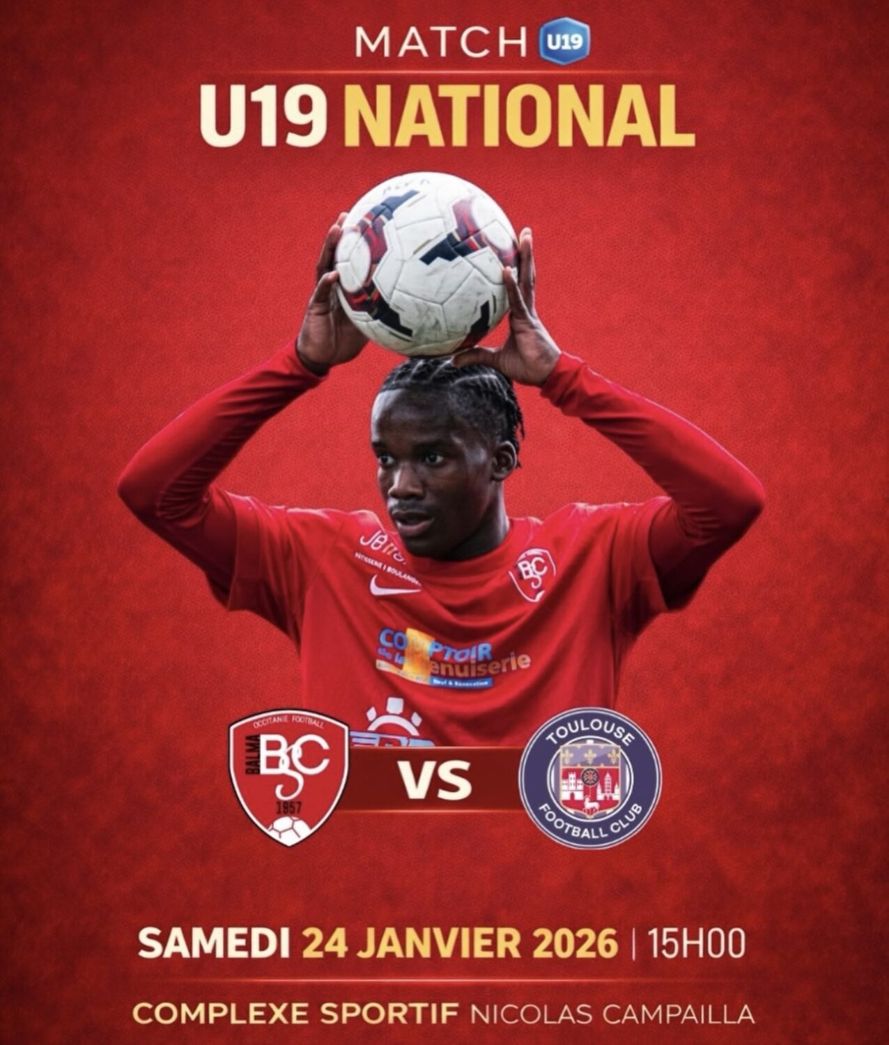Une très belle affiche à domicile ! Nos U19 affrontent le Toulouse FC dans un match qui s’annonce intense et engagé 💪🔥