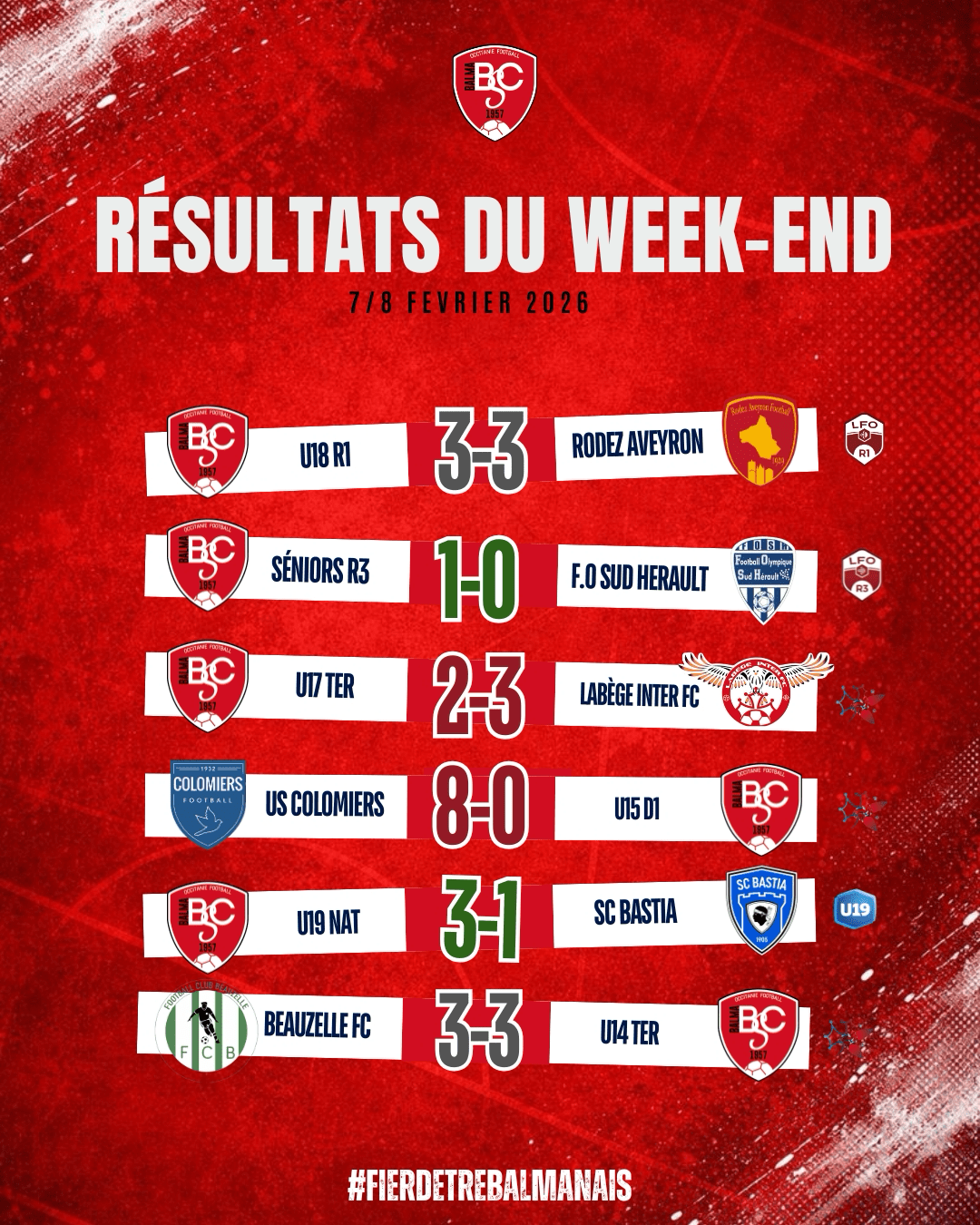 Des buts, de l’intensité et de l’engagement : voilà le résumé du week-end pour le Balma SC. 🔴⚪️