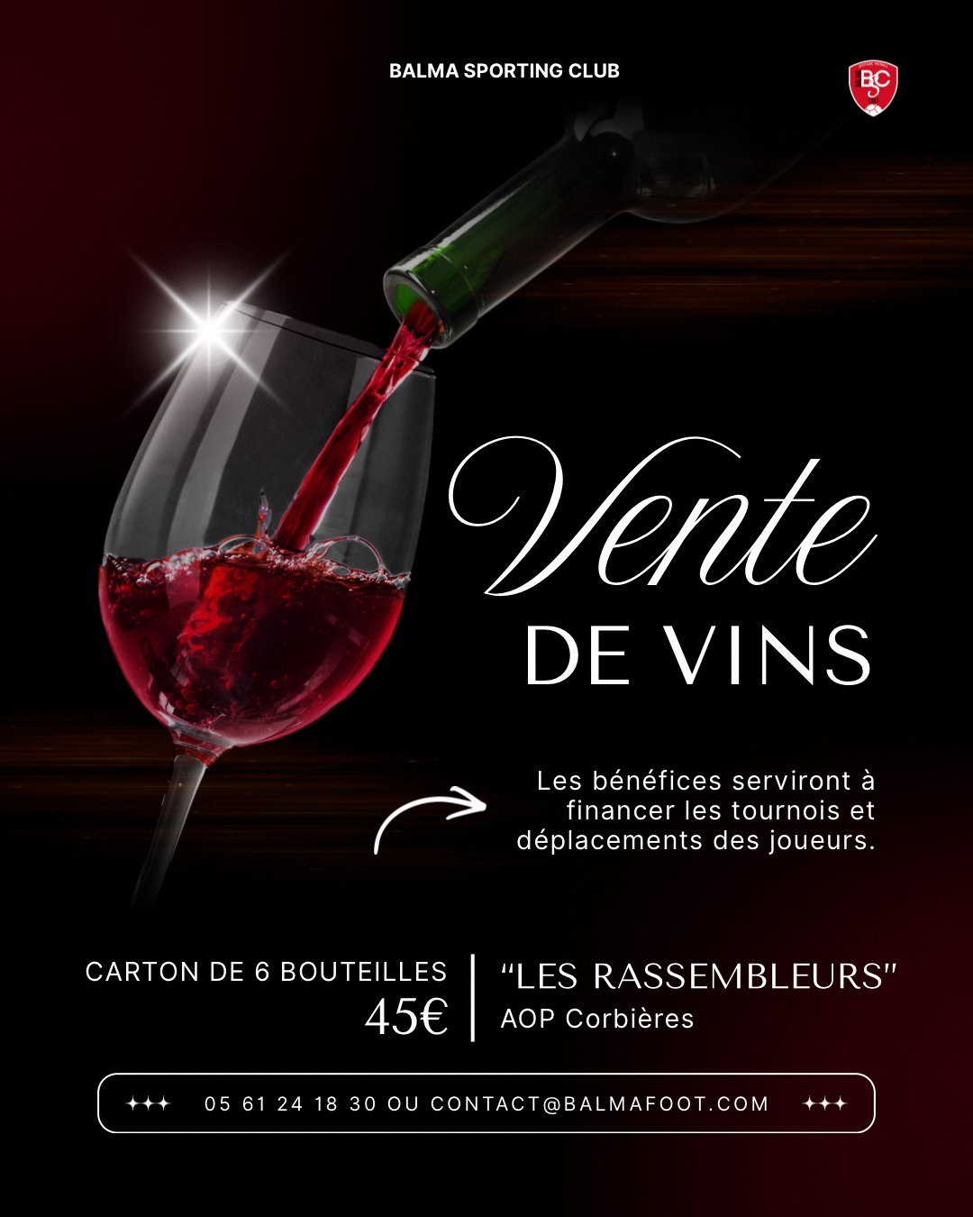 Afin de financer les tournois et projets de nos jeunes du Balma Sporting Club, nous lançons une opération spéciale en collaboration avec un vigneron local 🍷